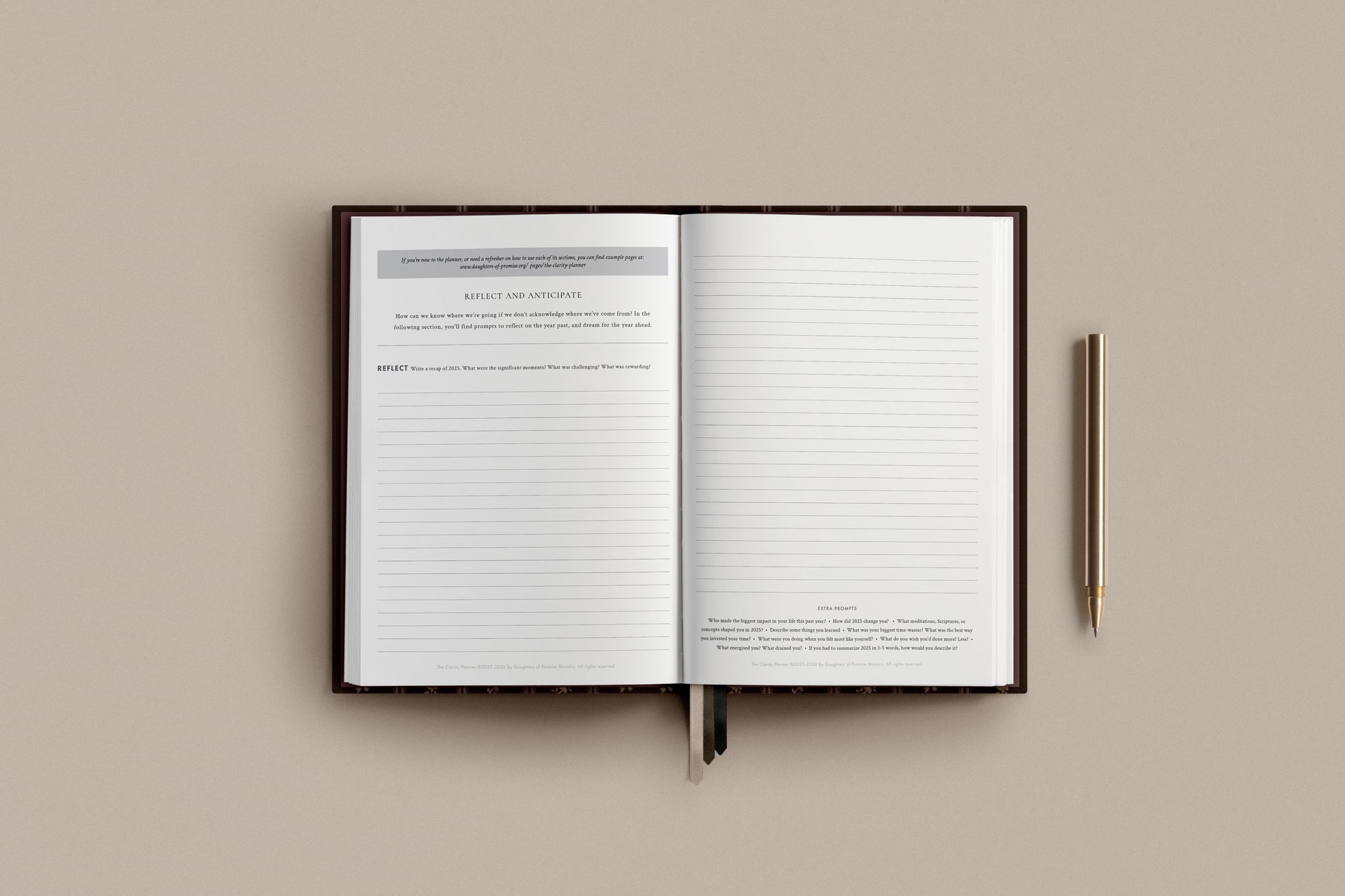 - Annual reflection and planning pages